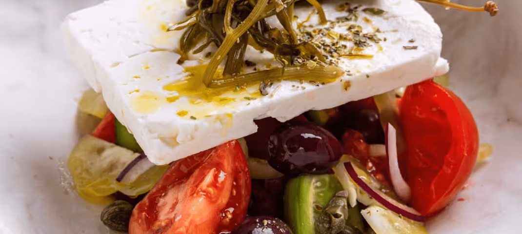 يقدم المطعم أطباقاً يونانية تقليدية ومفضلة من منطقة البحر الأبيض المتوسط، حيث تم تصميم كل طبق ليروي قصة زمنية عن الطعام والأصدقاء والتلاحم.
